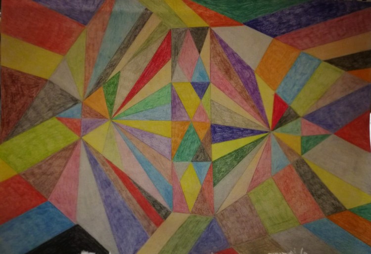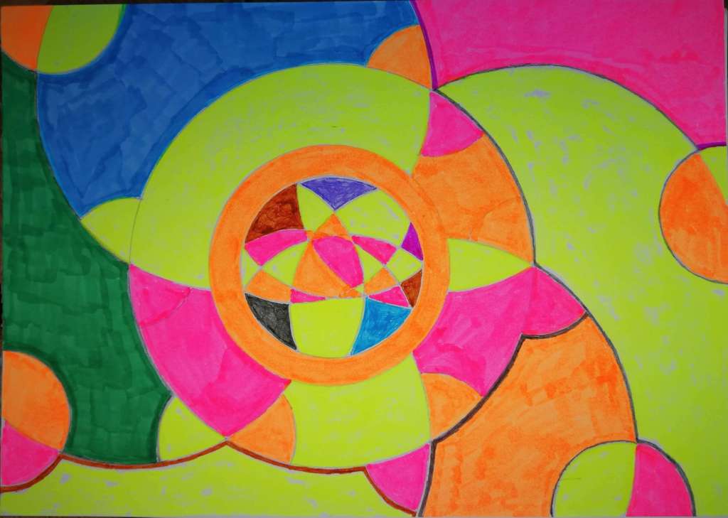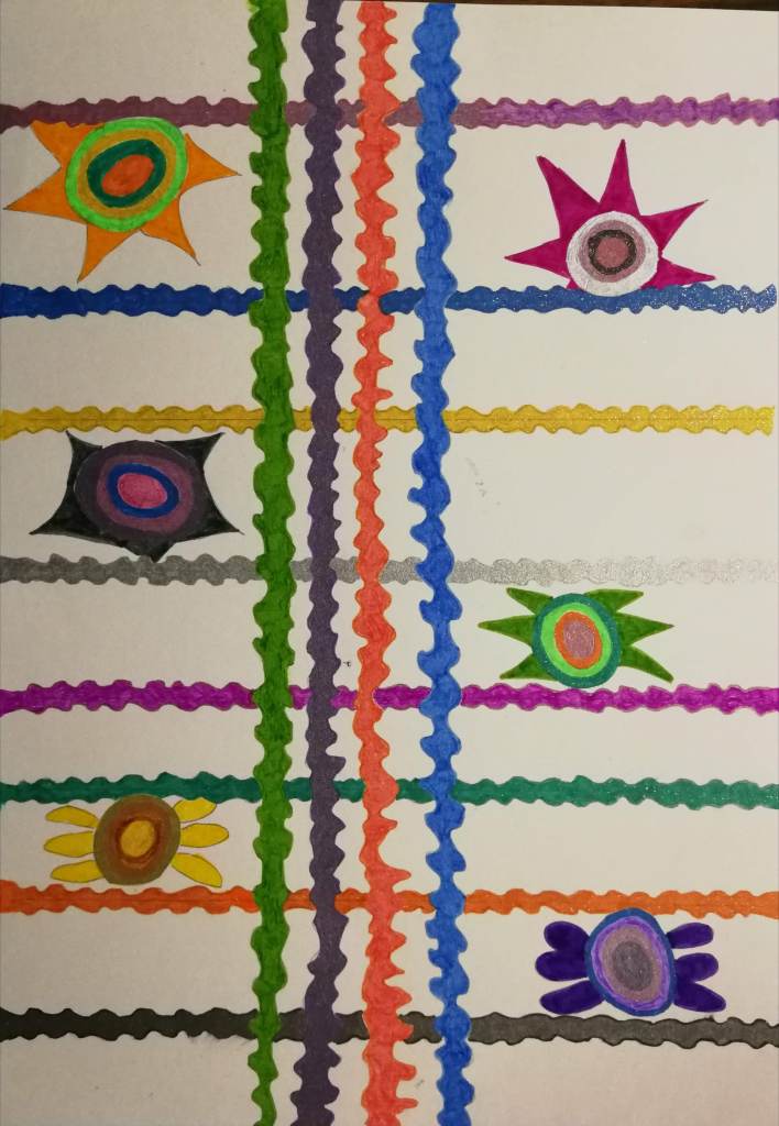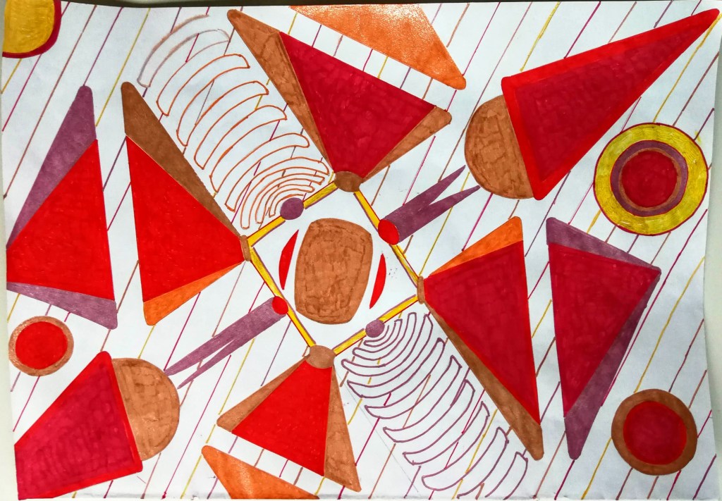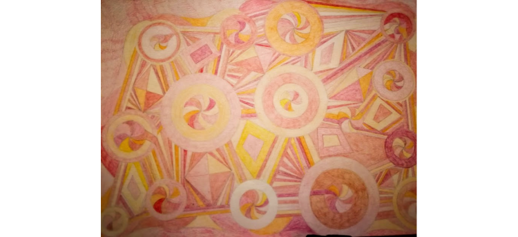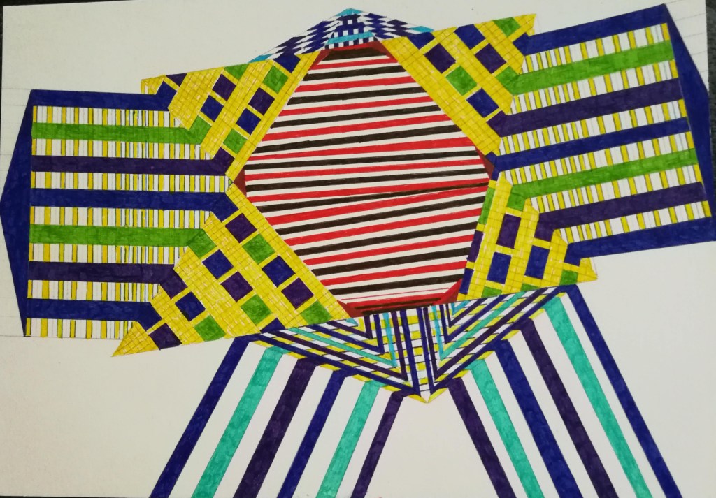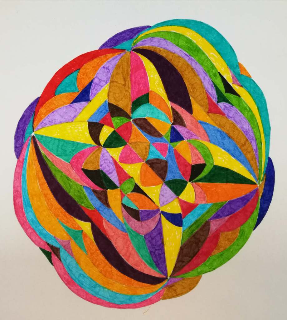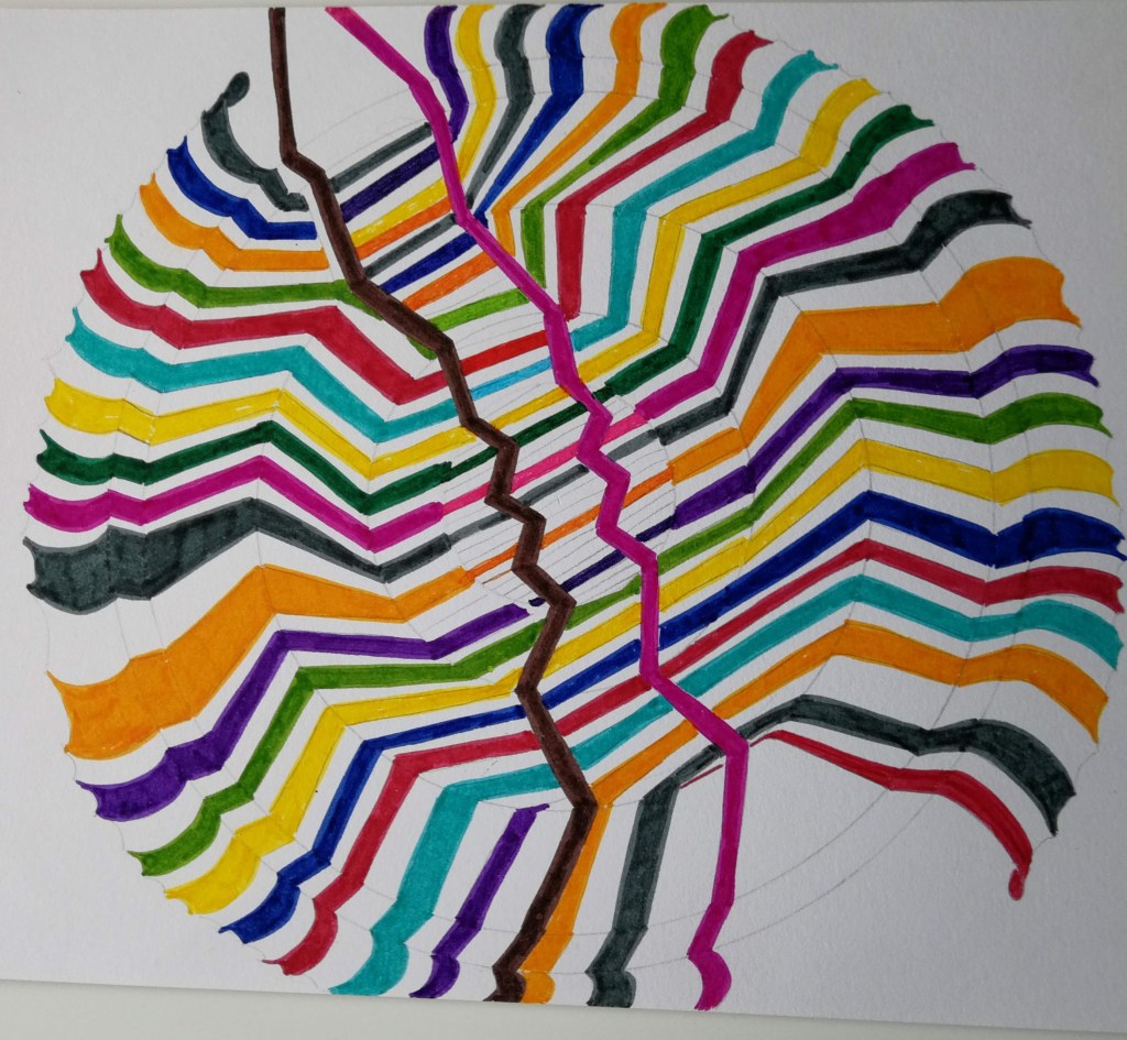 J’ai commencé à dessiner juste avant mon diagnostic d’autisme, en me demandant pourquoi je dessinais essentiellement des formes géométriques. J’ai compris après que j’ai une pensée visuelle et que mes dessins illustrent ce qui se passe dans mon cerveau. A savoir une activité dense voire envahissante, foisonnant d’idées et de liens tous azimuts.