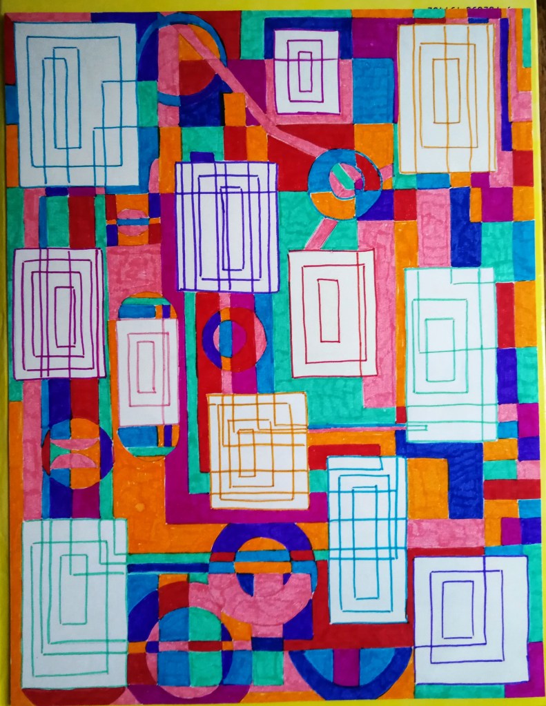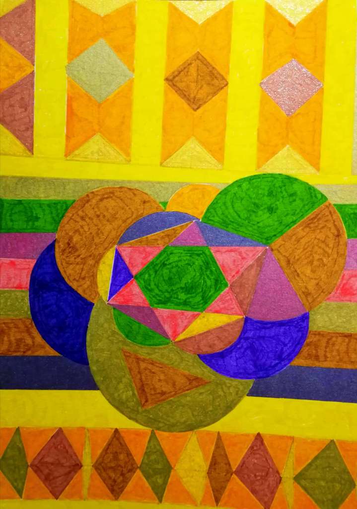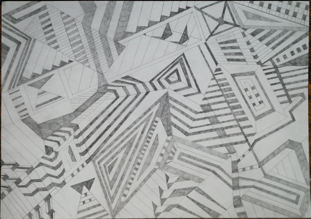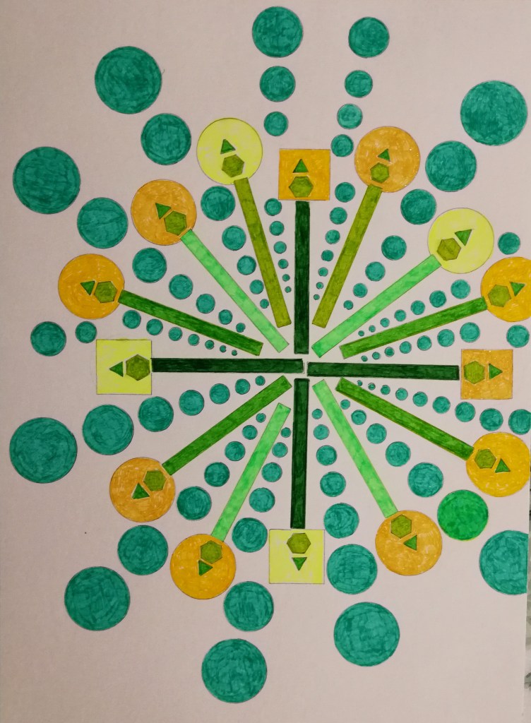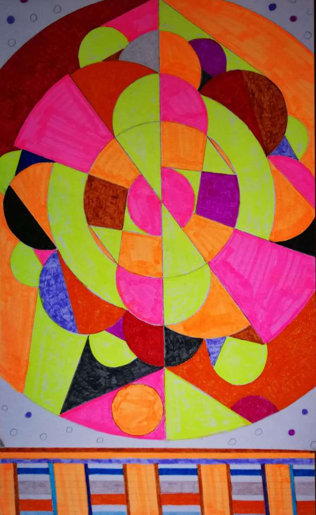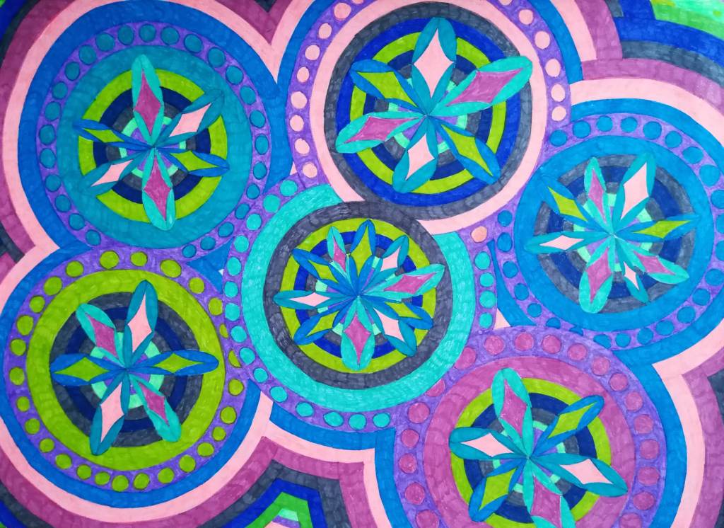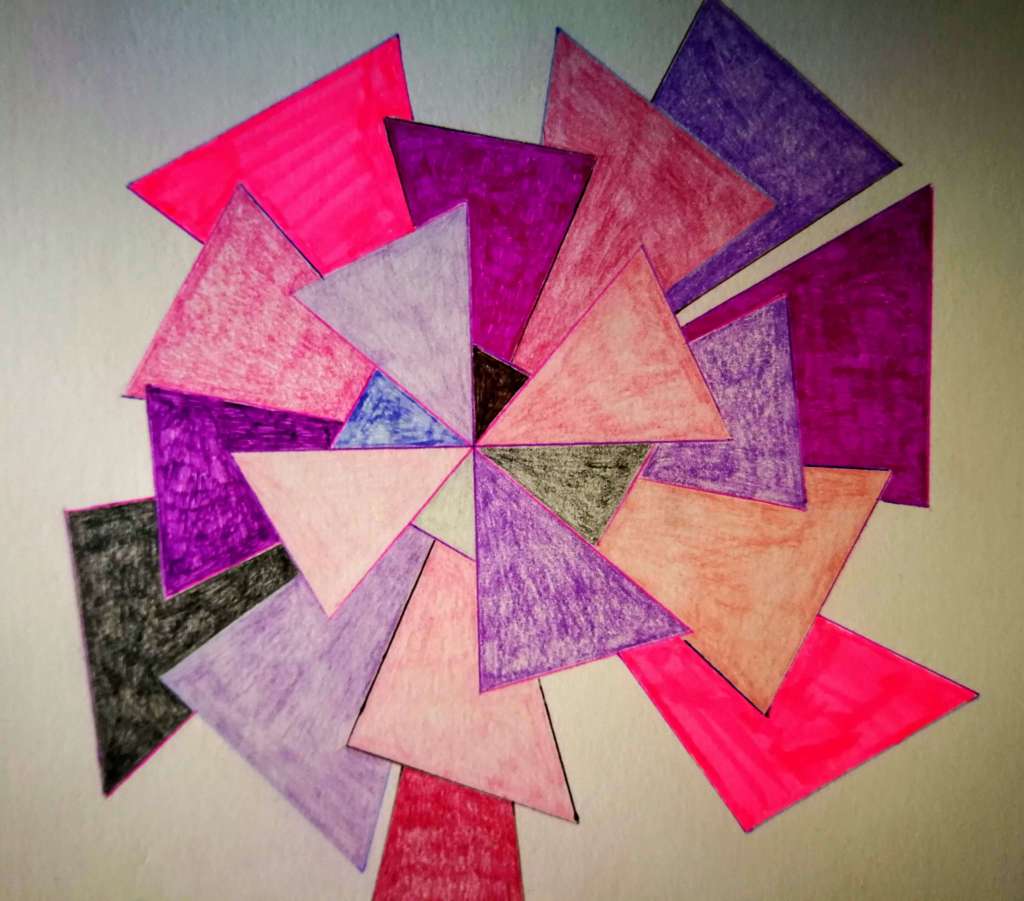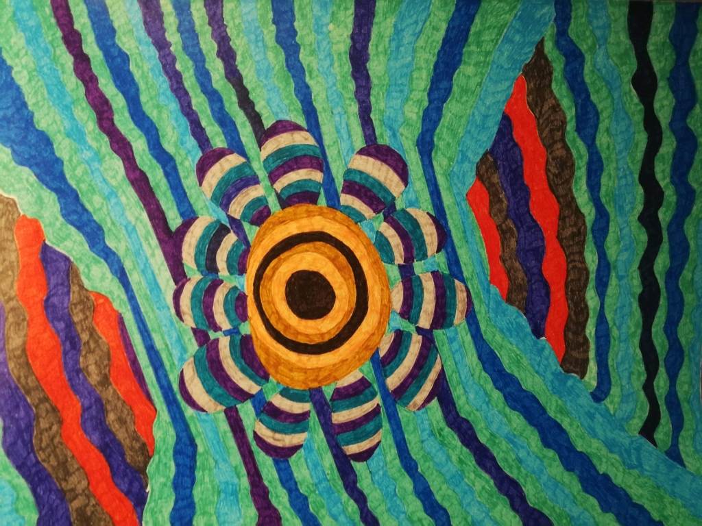 J’ai commencé à dessiner juste avant mon diagnostic d’autisme, en me demandant pourquoi je dessinais essentiellement des formes géométriques. J’ai compris après que j’ai une pensée visuelle et que mes dessins illustrent ce qui se passe dans mon cerveau. A savoir une activité dense voire envahissante, foisonnant d’idées et de liens tous azimuts.