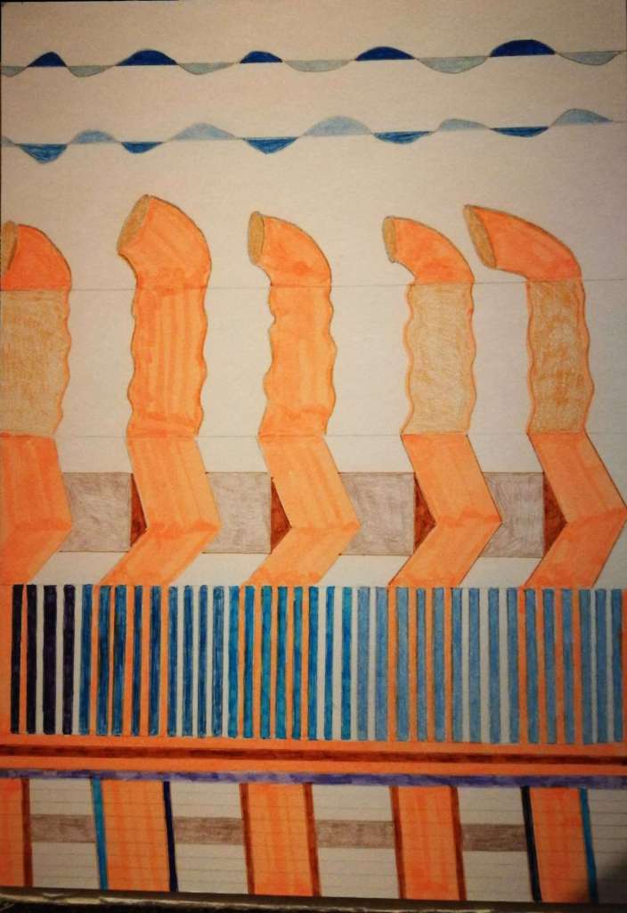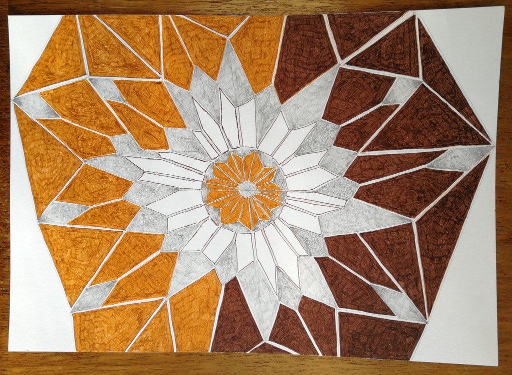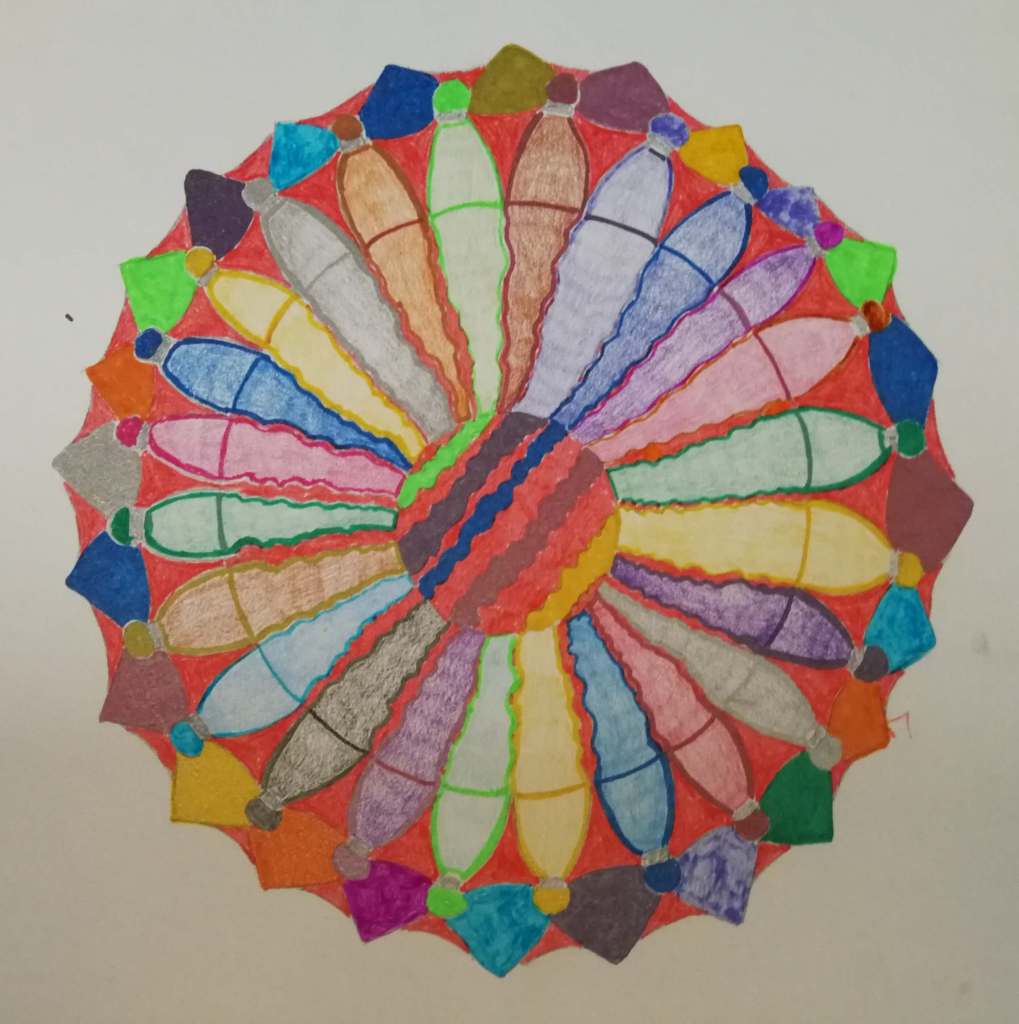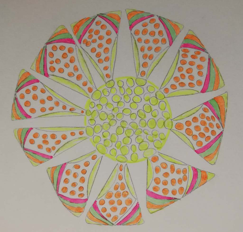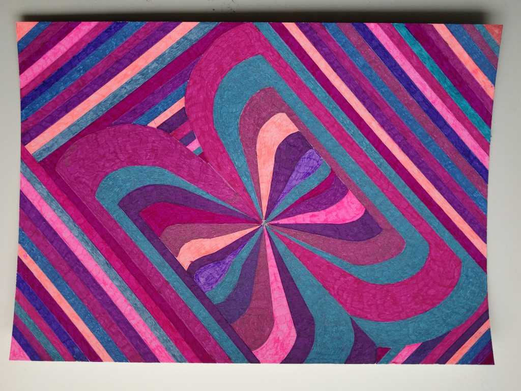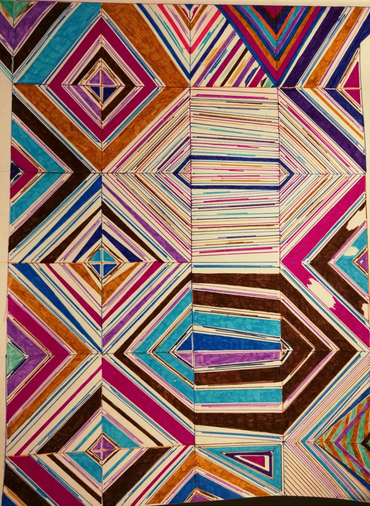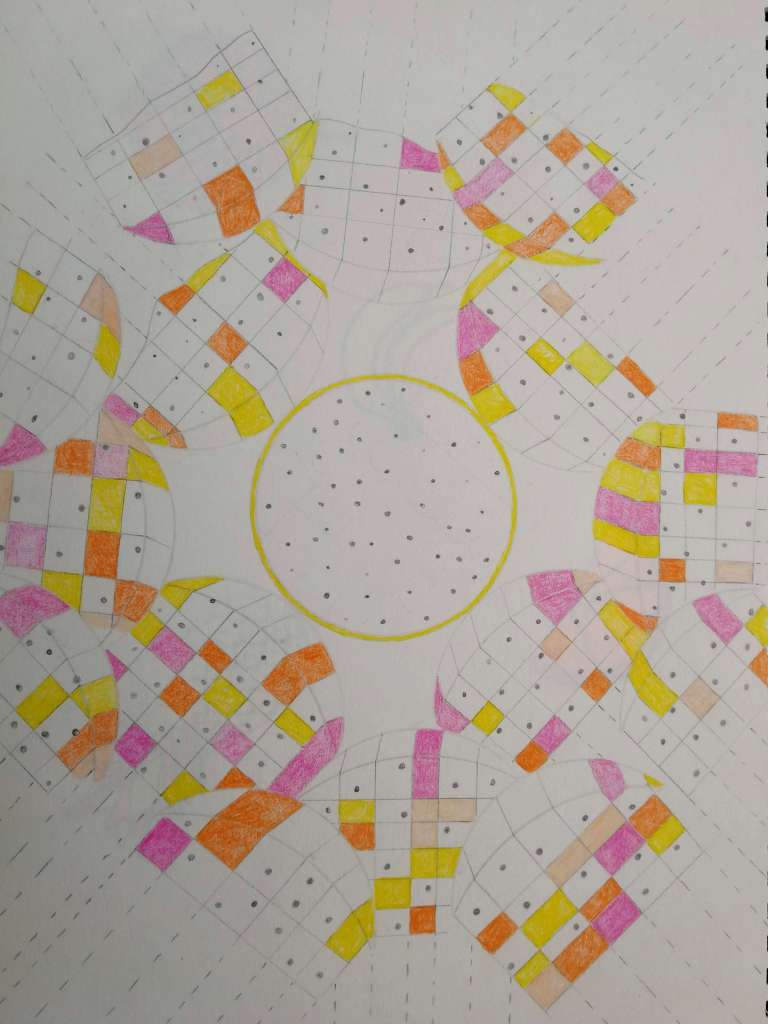 J’ai commencé à dessiner juste avant mon diagnostic d’autisme, en me demandant pourquoi je dessinais essentiellement des formes géométriques. J’ai compris après que j’ai une pensée visuelle et que mes dessins illustrent ce qui se passe dans mon cerveau. A savoir une activité dense voire envahissante, foisonnant d’idées et de liens tous azimuts.